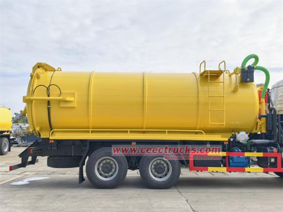 Africa clients purchased SHACMAN H3000 cesspit emptier truck mounted with Italy brand vacuum pump and been used for efficient sewage suction and transportation. SHACMAN H3000 series left hand drive 6x4 truck chassis and is equipped with WEICHAI euro 2 diesel engine WP10.340E22, engine power 340HP and emission 9726ml, matched working with FAST 10 shift manual gearbox, which provides powerful power and stable performance, ensuring excellent performance under various operating conditions. The Shacman H3000 vacuum tanker truck is equipped with a large-capacity vacuum tank with volume 18000Liters, based on Q355 material and thickness 6mm, two side cover thickness 8mm. Italy MORO brand water cycle model PM110W vacuum pump with efficiently flow rate 16400Liters per minute, equal to 273L/s, marched working with 10m DN100 pipeline hose, which can quickly and effectively absorb all kinds of sewage and debris, significantly improving suction efficiency. At the same time, the durability and reliability of the vehicle have also been carefully designed and rigorously tested to ensure that it can maintain efficient operation under heavy working conditions.