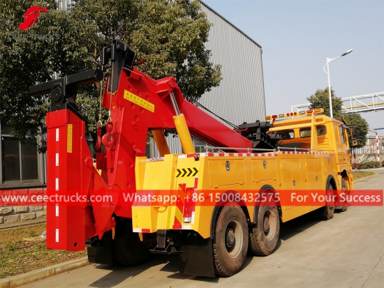รถบรรทุกกู้ภัย SHACMAN F3000 25 ตัน, แชสซี SHACMAN 8x4, กระปุกเกียร์ 12 เกียร์ที่รวดเร็ว, เครื่องยนต์ดีเซล WEICHAI 375 แรงม้า, บูมยกพร้อมกระบอกไฮดรอลิก, งานพ่นสีและโลโก้ขึ้นอยู่กับข้อกำหนด