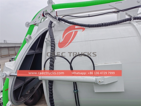 -ถังสูญญากาศทรงกระบอกสามารถยกขึ้นด้วยระบบไฮดรอลิกได้ 40-45 องศา ประตูหลังสามารถเปิดและปิดด้วยระบบไฮดรอลิกได้