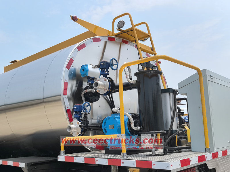 ตัวถังมีถังเก็บฉนวนความจุสูง ซึ่งใช้วัสดุฉนวนประสิทธิภาพสูงและระบบควบคุมอุณหภูมิอัจฉริยะ สามารถเก็บยางมะตอยร้อนหรือยางมะตอยดัดแปลงเกรดต่างๆ ได้เป็นเวลานาน ช่วยให้อุณหภูมิของวัสดุคงที่และมีความลื่นไหลที่ดี
