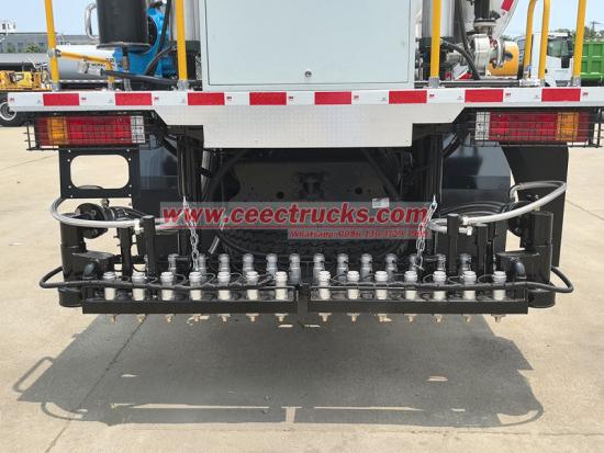ด้านหลังของรถบรรทุกจ่ายยางมะตอย Shacman X3000 ติดตั้งก้านฉีดพ่นแบบยืดหดได้พร้อมความกว้างที่ปรับได้ พร้อมหัวฉีดควบคุมการไหลที่มีความแม่นยำสูงหลายชุด สามารถปรับปริมาณการฉีดพ่นและขอบเขตการครอบคลุมได้อย่างแม่นยำตามความต้องการในการก่อสร้าง (เช่น ชั้นซึมผ่าน ชั้นกาว และชั้นปิดผนึก) และสามารถปรับอัตราการฉีดพ่นได้หลากหลายตั้งแต่ 0.2-3 ลิตร/ตารางเมตร
