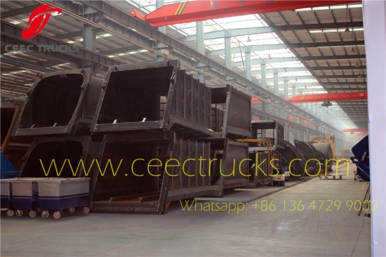 ผู้ผลิตรถบรรทุกบดอัดขยะคุณภาพสูงขนาด 12CBM อย่าง CEEC TRUCKS จัดหาชุดแผ่นข้างตัวถังรถบรรทุกบดอัด วัสดุเหล็กกล้าที่มีความแข็งแรงสูงพิเศษ ความหนาด้านข้างและด้านล่างมากกว่า 5 มม. การพ่นสีป้องกันสนิมเป็นมาตรฐาน โลโก้ตามต้องการ